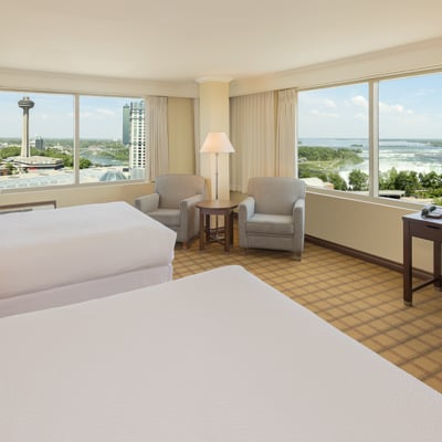 The Wyndham Grand Fallsview Hotel offers a perfect blend of luxury, comfort, and convenience. The hotel has direct access to Fallsview Casino through an indoor walkway and is just steps away from the Niagara Falls Convention Centre. Guests can enjoy free high-speed Wi-Fi, a luxurious indoor pool, and a modern fitness center. Savour world-class dining at Ruth’s Chris Steak House, known for its premium steaks and elegant atmosphere, or The Keg Steakhouse & Bar, a Canadian favourite offering expertly grilled steaks and a warm, inviting setting. Grab a handcrafted beverage at Starbucks or enjoy casual bites at TGI Fridays, all located on-site. For top-tier entertainment, the hotel features Yuk Yuk's Comedy Club and the exciting Niagara Falls Fun Zone, offering an unforgettable stay in the heart of Niagara Falls.